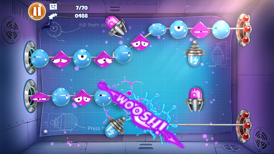 Более того SPLODE’N’DIE может похвастаться не только красочной прорисованной графикой, но также всевозможными типами монстров с различными уникальными способностями. В распоряжении игрока различные типы оружия: лазерное, электрическое, пламя огня и кислота. И все это чудесные особенности в трех режимов и более 50 уровнями, которые будут все сложнее и сложнее предыдущего. Сам релиз новой головоломки намечен на конец лета, про цену пока ни чего ни могу сказать. Ждем и любуемся скриншотами.