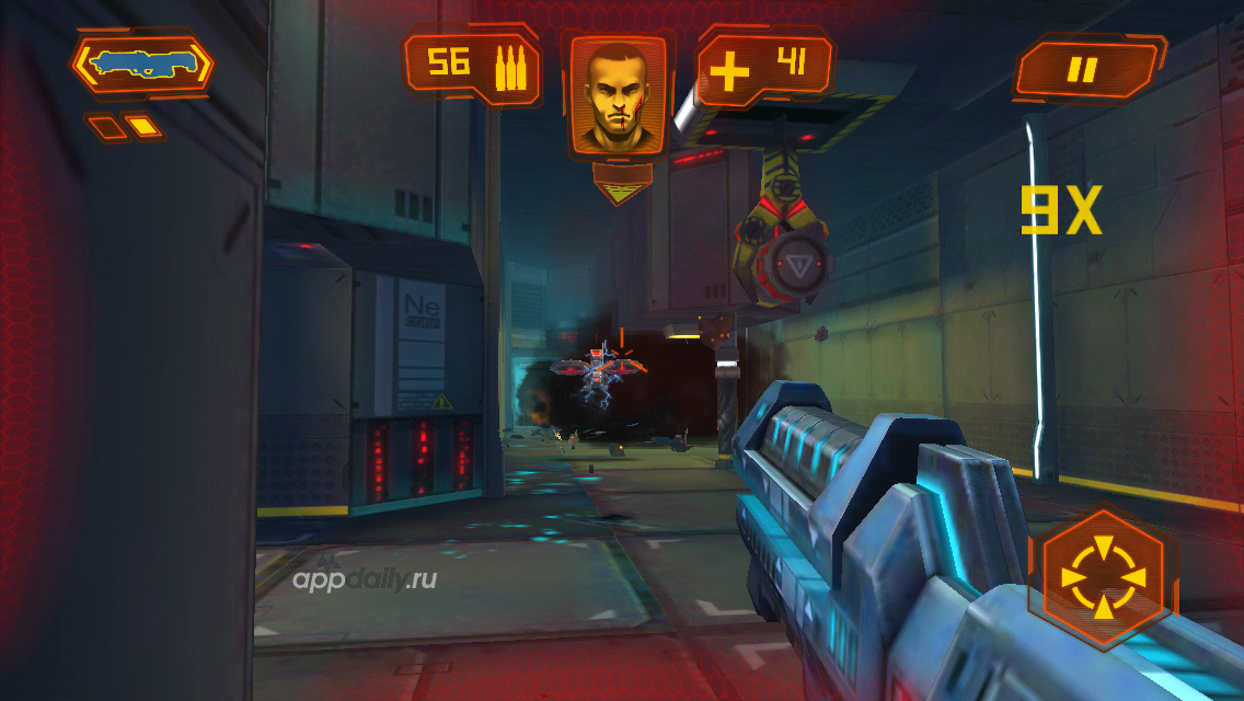 Как уже известно разработчики из Tasty Poison Games готовят к выпуску совместно с издателем Crescent Moon Games шутер от первого лица Neon Shadow на iOS платформы. Ранее же данный шутер был только в Google Play и весьма успешно продается, конечно разработчики решили портировать игру и на «Яблочные» устройства. Нам в руки попала данный шутер, благодаря Crescent Moon Games, скажу Вам так, конечно я не играл данную игру на Android, но стало интересно поиграть в Neon Shadow на своем iPhone 5. И так ваша задача спасти космическую станцию Земли от захвата «Механойдов» все в ваших руках вернее сноровке и различного вида оружия. Настройками игра не богата, но имеет 3 слота сохранения, каждый слот для каждого игрока, который не позволит вашему близкому играть в вашу игру. Сам же геймплей прост беги вперед и мочи всех «Дроидов» на своем пути из аля «Винчестера», собирая по пути флаконы с аптечкой и боеприпасы к оружию.