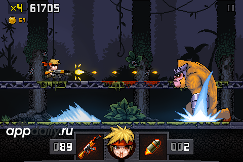 Артём Глущеня: Игра не является раннером в чистом виде. Небольшой микс из жанров по факту серьезно влияет на игровой процесс. Что же касается конкурентных преимуществ, то в игре множество фишек, приближающих ее к жанру аркады: бои с боссами, обширный арсенал, прокачка, секреты и прочее. Что бы получилось, если бы Metal Slug был реализован в жанре бесконечного раннера? Примерно такую задачу мы и решаем.