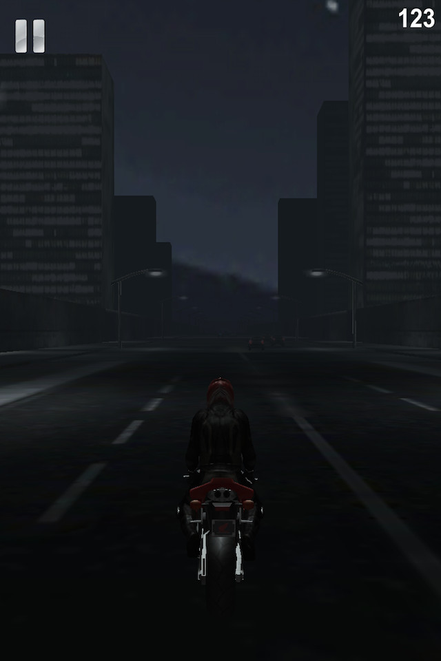 Игроку предстоит взять под свое управление мотоцикл и в ночное время маневрировать между встречного или попутного потока.