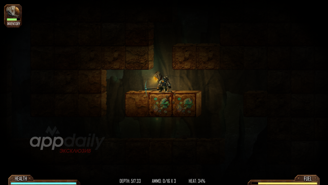 Игра закидывает игроков на планету Марс, где главный герой должен в недрах планеты, найти различные виды минералов – платина, золото, железо и так далее. Неизвестный мир опасен и коварен, для своей защиты и запаса кислорода у нас имеется постройки в которых мы можем пополнить потерянное здоровье и газ для реактивного ранца.