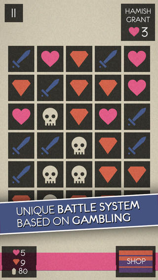 Это головоломка с элементами rpg игра с уникальной боевой системой, основанной на азартной игре. Попробуйте победить как можно больше противников, вы можете разгадать тайну историей игры.