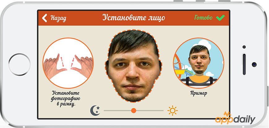 В приложении уже создан смешной фон, пользователь добавляет туда свои фото или фото друзей, после чего программа обрабатывает снимки и выдает веселые мультики и минифильмы с вашим участием.