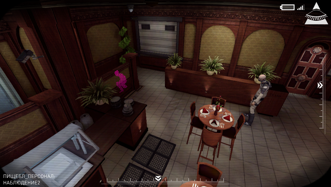 Конечно, можно спрятаться, в шкафчик или какой-нить уголок ну или убежать. Само же управление весьма простое, вы как глаза, должны управлять камерами, переключаться с одной камеры на другой, чтобы увидеть сому героиню и сам коридор, давать команды героине куда ей следует идти: действия Хоуп совершаются касаниями — куда ткнешь, туда собственно пойдет. Нажав на иконку виде «глаза» время останавливается, у вас на экране образуется эффект рентгена, который показывает вам, где находятся камеры, чтобы вы могли переключится, показывает, что происходит за стеной и собственно героиню и антигероев «охранников». Так же можно увидеть скрытые от простых глаз дополнительную информацию: плакаты, игры и прочие различные весьма ненужные вещи. Собственно, и точку назначения куда следует вести Хоуп. По мере продвижения мы можем попасться, вернее случайно или нет завести в ловушку девушку, а вот вашей задачей становится найти путь, чтобы героиня не попалась – разгадать секрет комнаты и открыть секретный выход из помещения.
