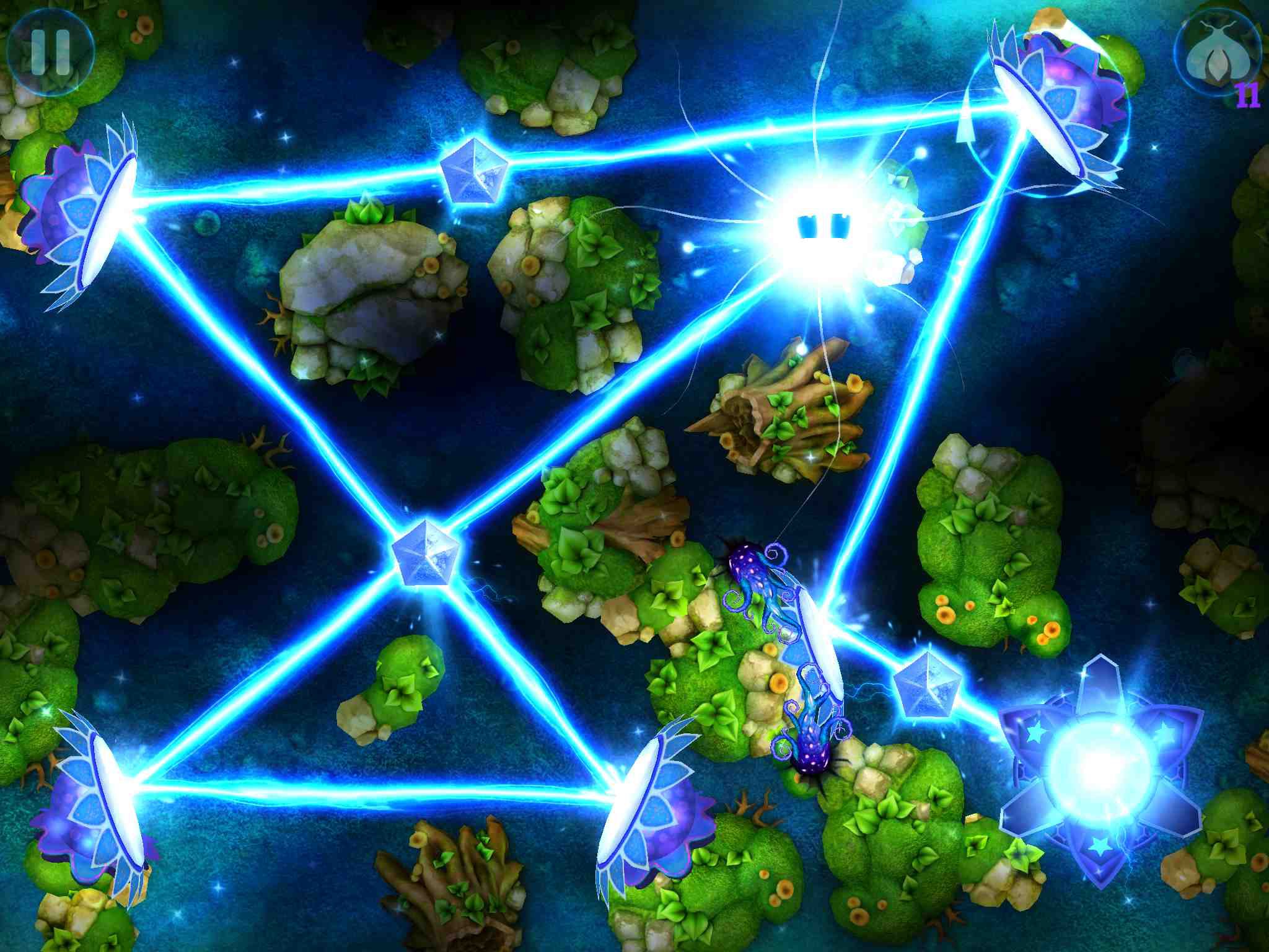 Механика игры на первый взгляд проста как два пальца. На каждом уровне игрок должен направить луч света из одной точки в другую, поворачивая источники света в различных направлениях. Также, для полного прохождения, желательно направлять луч таким образом, чтобы он задевал 3 звездочки, и уже после этого достигал заветного выхода. Усложняться игра будет с каждым уровнем путем построения более хитроумных конструкций ландшафта, а позже и появлением новых дополнительных элементов – тех самых фильтров, коллекторов, призм и так далее. Если же вы застряли и вообще не понимаете, куда направить луч света в кромешной тьме, то можете воспользоваться подсказкой – светлячком. Но тут есть загвоздка: он не показывает как именно надо направить луч для достижения полного прохождения уровня, а лишь освещает часть пути на ограниченное время. Так что совсем уж просто пройти уровень вам никто не даст – придется размять извилины. Эти же светлячки мы сможем собирать на каждом уровне, нужно только найти их и посветить на них лучом, тогда получим +1 к подсказкам.