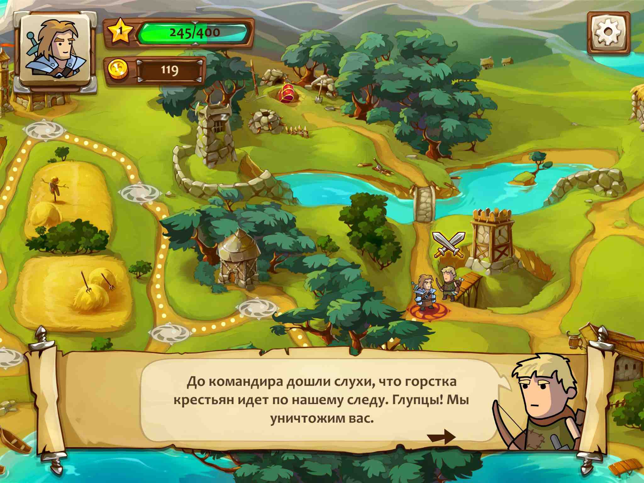 По сюжету наш главный герой выживает после жестокой бойни в его деревне, устроенной бандитами-налетчиками. Проходит время, он вырастает, набирается силы и мужества и…начинает свое путешествие, целью которого является истребление всего зла с родной земли. ВО время своего путешествия мы собираем небольшую армию из различных солдат. Что примечательно, так это то, что сам герой не выходит на поле боя и руководит ими удаленно. Нам предстоит сразиться с более чем 25 видами разнообразных противников, начиная от Гоблинов и заканчивая Ледяными стражами; уничтожить боссов в конце каждой главы и побывать в трех разных локациях; использовать все свои навыки лидера и продумывать тактики; изучать новые заклинания, использовать артефакты и прокачивать наших солдат и преодолеть захватывающее приключение по освобождению родных земель от ненавистных бандитов. И все это прорисовано в ручную совершенно небольшой командой разработчиков. Графика в Braveland очень гармонично вписывается в сам геймплей. И я рад, что стиль не 3D, а именно рисованный, ведь это игра для мобильных устройств. Разработчики создали некую уютную, домашнюю атмосферу, и благодаря этому игроку не надоедает игровой процесс, а даже наоборот, он втягивается и проходит сюжетную линию на одном дыхании. Разве не прекрасно?