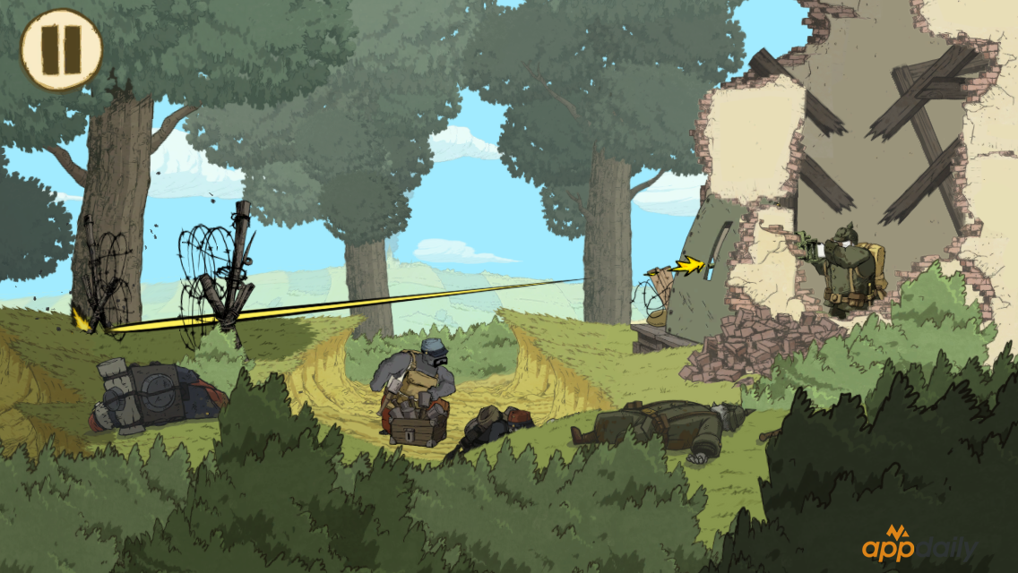 Меня удивила очень приятная деталь, «русская озвучка», игроков ждет полностью русская локализация Valiant Hearts: The Great War. По мере нашего продвижения в игре мы будем узнавать реальные исторические факты с реальными фотографиями. Каждый герой имеет свои способности и умения, кто-то силен как «Зевс», способный своей силой разорвать все и вся на своем пути. Кто-то силен умом и имеет в распоряжении верного друга, выполняющий ваши команды, конечно же это собака. Этой парочке все не почем, головоломки, встречающиеся в игре, они проходят помогая друг друга. Песик так же подскажет вам где спрятанные различные предметы, которые мы должны собрать по мере прохождения уровня, пролезть там, где обычный человек ну не как не сможет пройти. Все это управляется простым сенсорным интуитивно понятным управлением, звуковое сопровождение на поле битве и в нее просто великолепны, будоражащая фоновая музыка просто гипнотизирует. Всех игроков ждет первый эпизод, после, в течении этого года, мы получим все эпизоды: Valiant Hearts: The Great War разделен на 4 эпизода, все последующие эпизоды мы сможем получить после обновления и покупки новых эпизодов по 129 рублей.