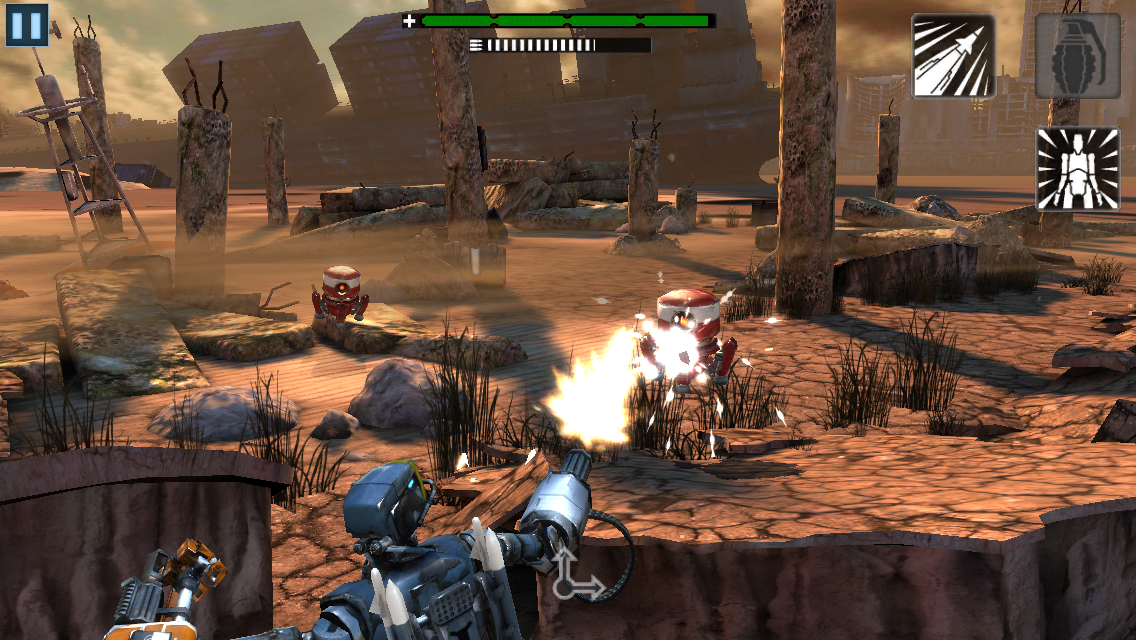 Сами же роботы по умнели, не подставляются под пули, появились новые виды «Роботов» с новыми видами оружия, а летающие «Дроиды» могут попортить вам жизнь. Само же игровое меню изменилось лишь порядком, все также, покупка нового оружия, брани и прочее. На все это нужно иметь игровые деньги, которые мы зарабатываем на поле битвы. А сами же уровни весьма различные и линейны истории, теперь же мы должны постараться, чтобы на каждом уровне заработать «3 звезды» для оптимального сложения. Сама же графика ничем то и не изменилась, да стало как-то красивее, стало более ярче, добавились погодные условия – дождик например, различные спец. эффекты и не более. Однако играть стало веселее, интересней. После каждого прохождения уровня мы попадаем в свою «Берлогу» в которые тащим различные предметы для сборки устройства, а голограмма принцессы нам все разжевывает – что было и как было бы лучше для всех, а мы домашний питомец должны выполнять ее задания. Красиво, интересно и весьма играбельно.